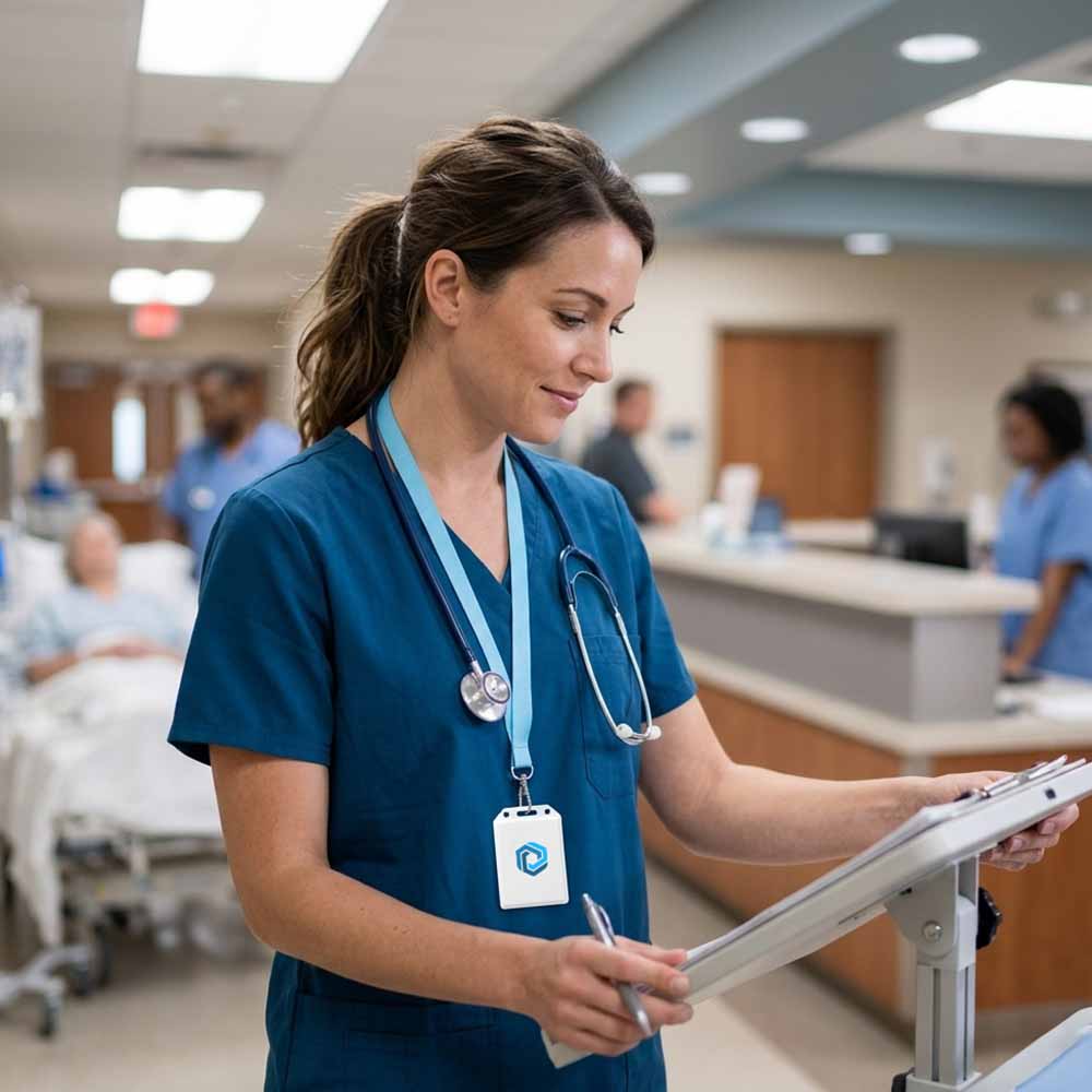 The front is intentionally left blank, giving organizations the flexibility to add custom identification or branding so the wearable blends seamlessly like a standard ID badge.